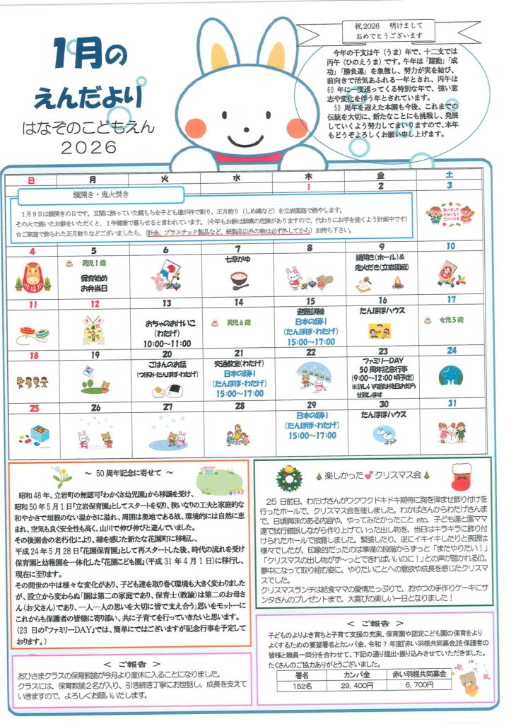 ![]() | ●七草がゆ ●鬼火だき・鏡開き | ●ファミリーDAY &子育て講座 |