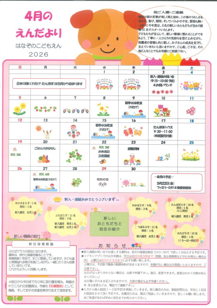 ![]() | ●新入進級お祝い会 ●平和教育 ~かよこ桜見学~ | |