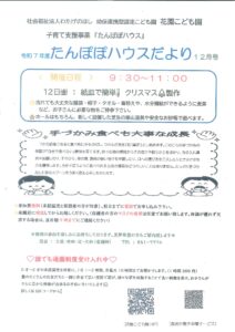 12月 園だより・給食だより・学童だより 2025 11/28 イベント おたより お知らせ 2025年11月30日 イベント おたより お知らせ よかったらシェアしてね! URLをコピーしました! URLをコピーしました! 11月 子育て支援教室『たんぽぽハウスだより』 12月 子育て支援教室『たんぽぽハウスだより』 関連記事 12月 子育て支援教室『たんぽぽハウスだより』 2025年11月30日 11月 子育て支援教室『たんぽぽハウスだより』 2025年10月31日 11月 園だより・給食だより・学童だより 2025年10月31日 10月 学童だより(子どもの家) 2025年9月30日 10月 たんぽぽハウスだより 2025年9月30日 10月 園だより・給食だより 2025年9月30日 子育て支援教室『たんぽぽハウス』だより 9月号 2025年8月31日 9月 園だより・給食だより 2025年8月31日