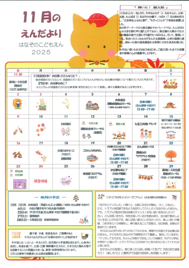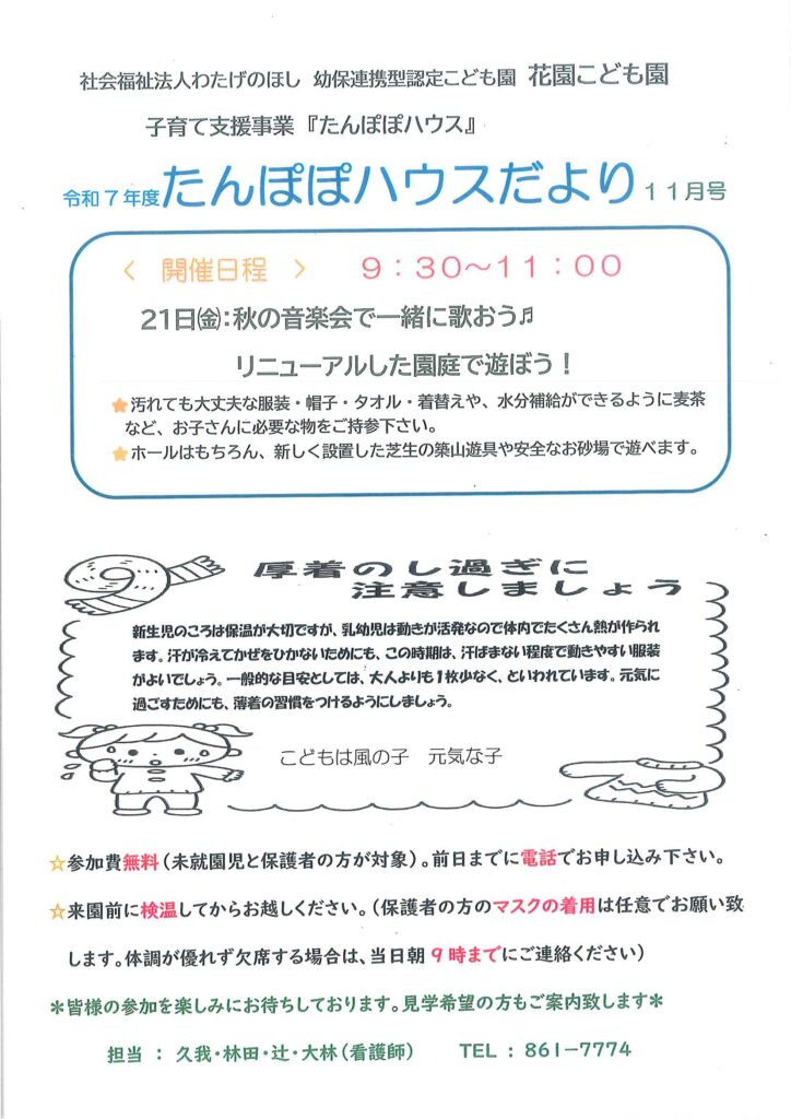 11月 子育て支援教室『たんぽぽハウスだより』